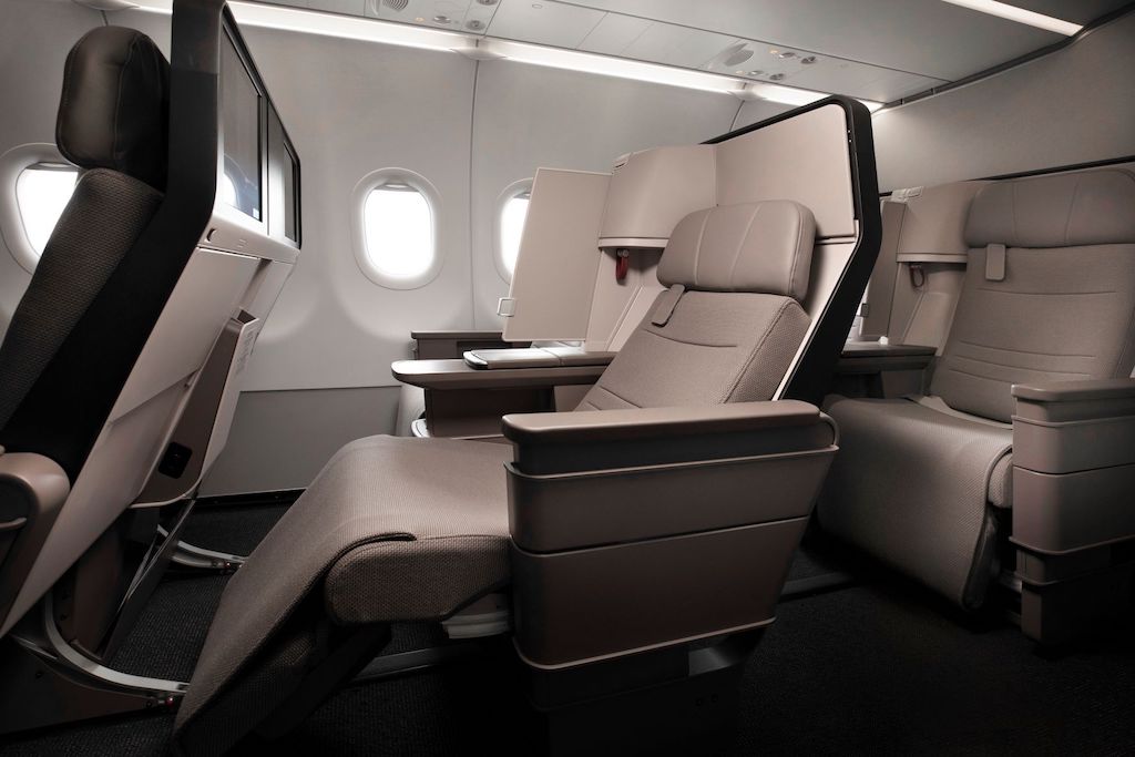 Die Sitze lassen sich nicht in ein flaches Bett stellen, die Neigung sowie die Sitzbreite kann dennoch ein komfortables Flugerlebnis ermöglichen. Das Entertainment spielt natürlich auch vorne im Flugzeug eine große Rolle, dank der 15,6-Zoll-4K-Ultra-HD Monitore kann man das IFE voll genießen. Eine Bluetooth-Kopplung für eigene Kopfhörer ist möglich, der Router von Intelsat versorgt die Passagiere mit einem WiFi Zugang.