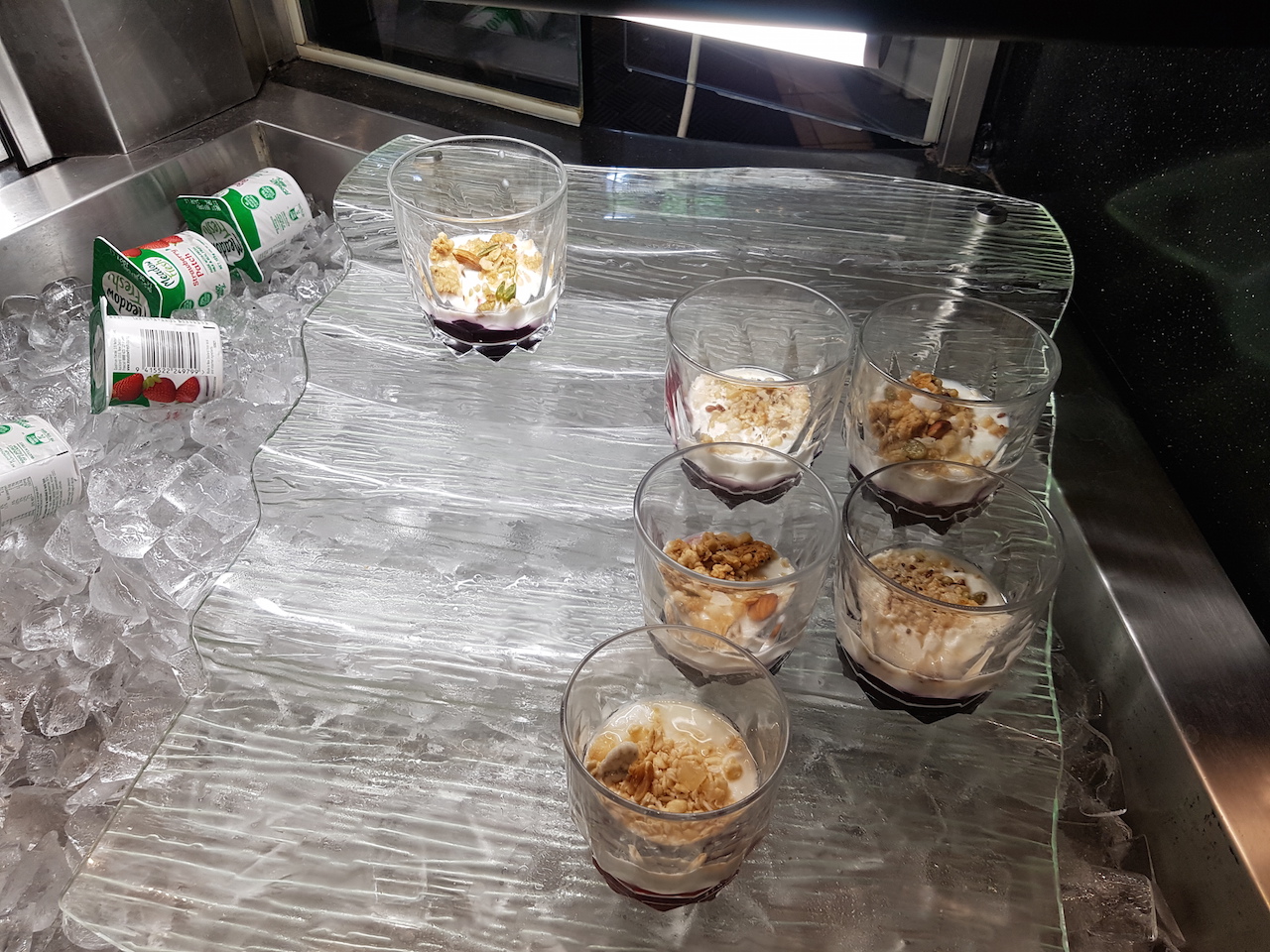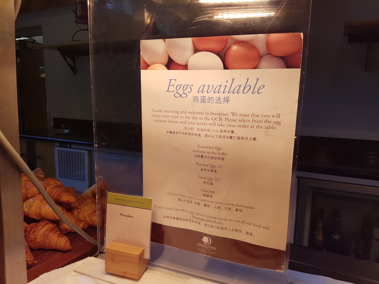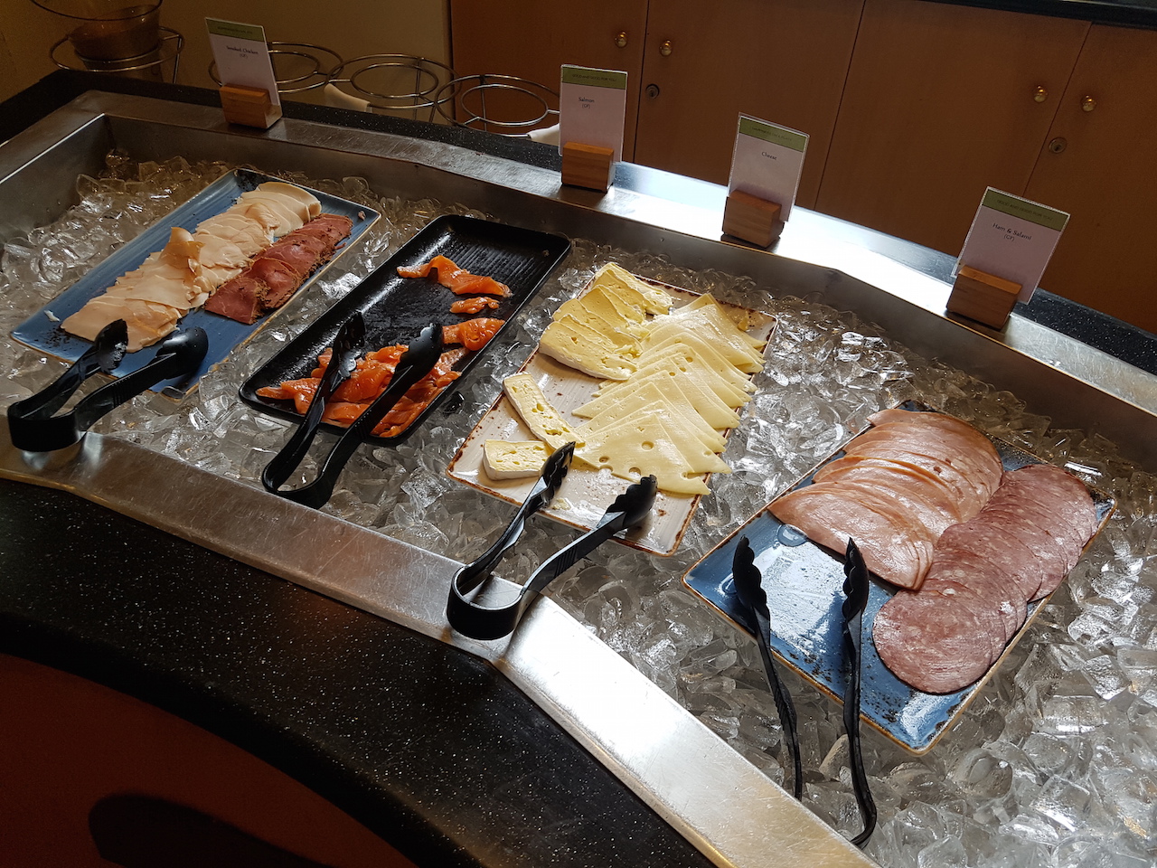 Zudem gab es natürlich auch noch ein Buffet. Hier wurden neben den üblichen warmen Gerichten, wie Rührei mit Speck, auch Hashbrowns, Bohnen und Speck angeboten. Ein typisch englisches Frühstück also. Zudem gab es auch Obst, Müsli, Pancakes und diverse Brötchen, Brote und süße Teilchen.  Die Auswahl des Frühstücks würde ich als gut bewerten. Es wird auch Filterkaffee am Platz serviert. Wenn man allerdings Kaffeespezialitäten wünscht, dann kostet es extra.