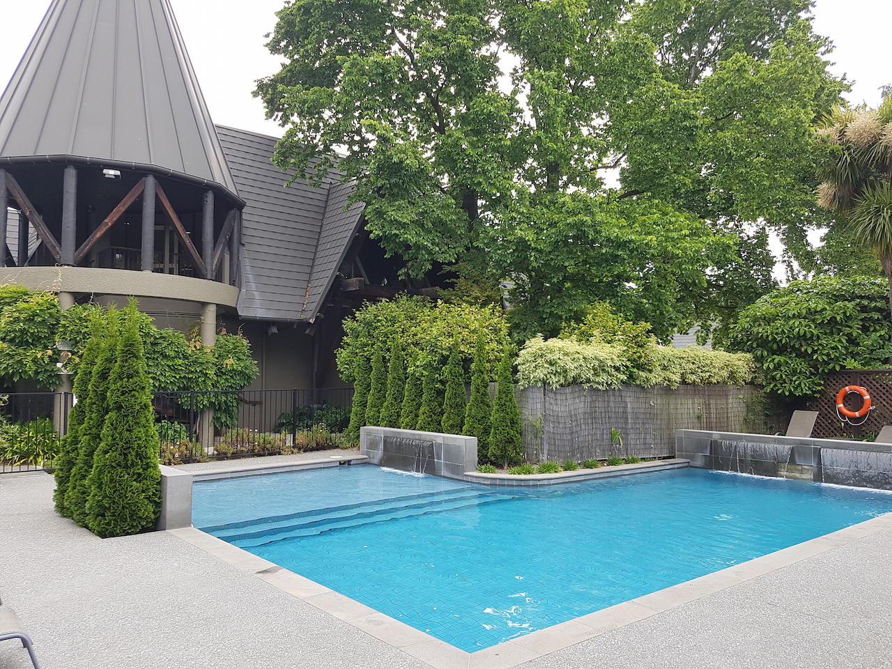 Im Garten gibt es auch einen beheizten Außenpool. Das macht auch durchaus Sinn. Vor allem wenn man bedenkt, dass der Sommer in Neuseeland doch recht kurz sein kann.