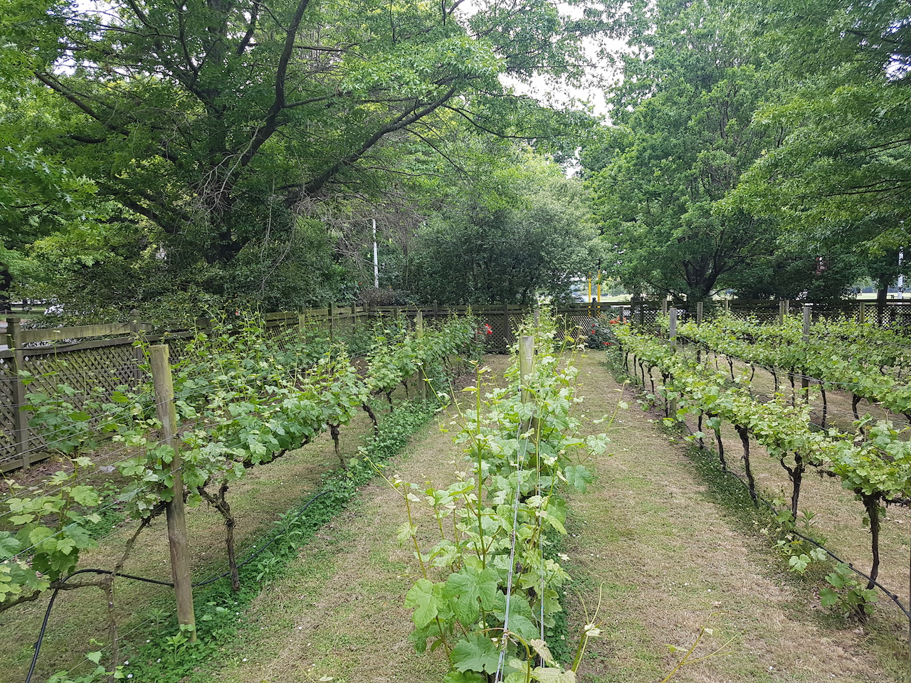 Im hinteren Bereich des Garten gibt es noch einige Weinreben. Dies fand ich mal ziemlich originell. Ob es auch einen eigenen Wein gibt, weiß ich leider nicht.