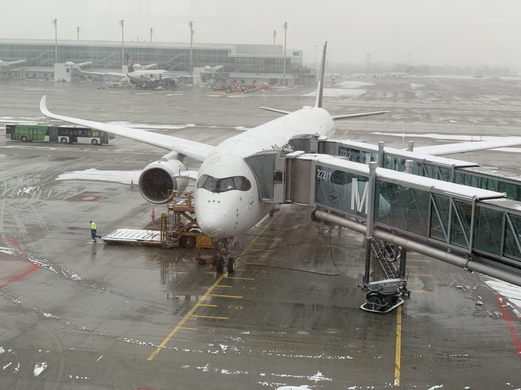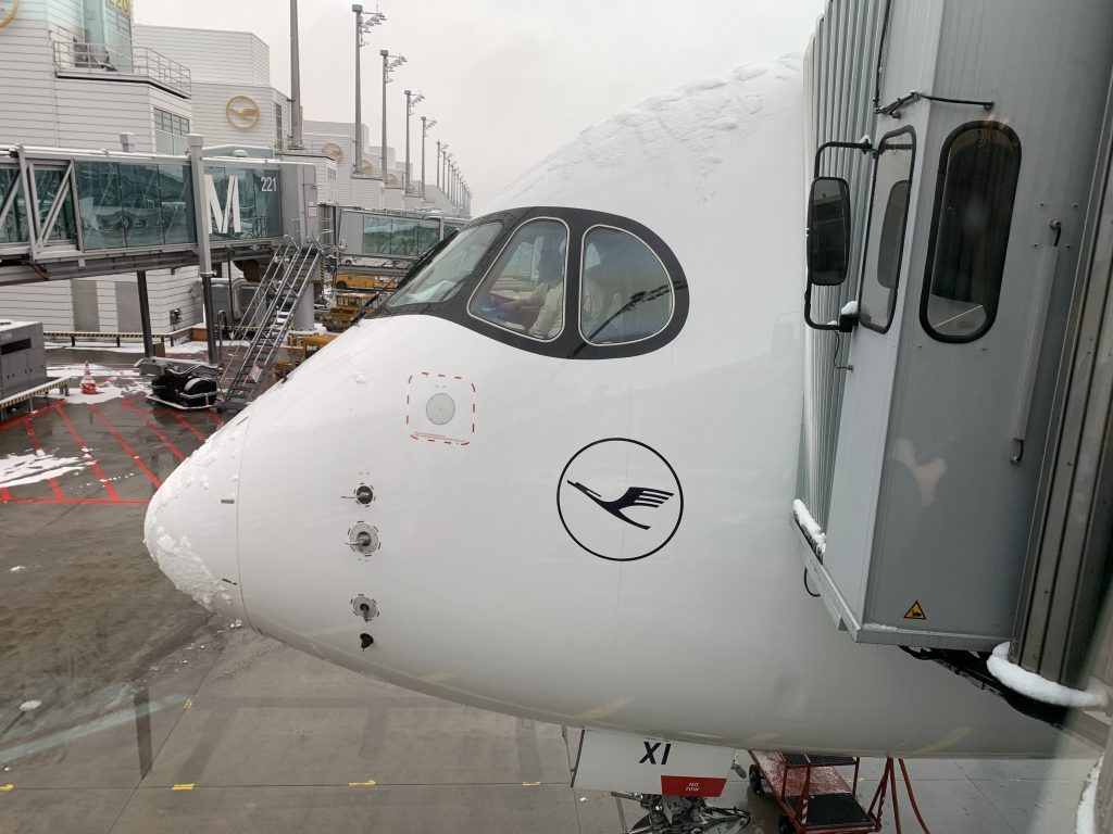 Endlich im Lufthansa A350 fliegen und dann schneit es!