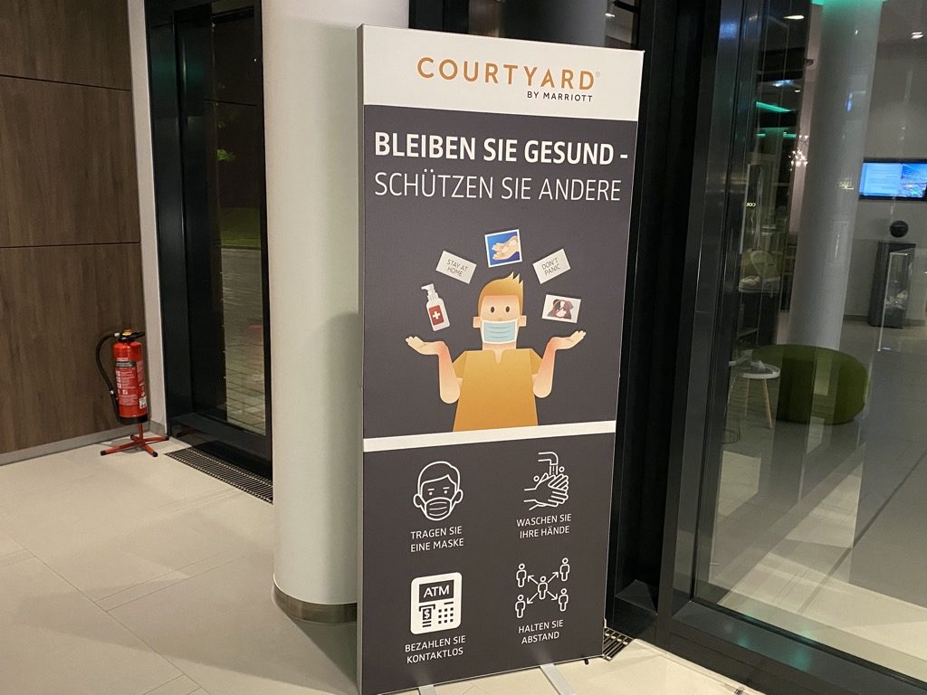 Dass Abstandsgebote und Maskenpflicht derzeit auch für Hotels gelten, dürfte niemanden überraschen. Viele Hotels setzen auf Kennzeichnungen um Abstände einzuhalten und schützen ihre Mitarbeit mit Plexiglas und co. an der Rezeption. Interessanterweise stand ich selbst bei meinem Besuch des Courtyard Bremen in der „Corona-Hochsaison“ ganz ohne Schutz den Mitarbeitern an der Rezeption gegenüber. Die Maskenpflicht kam in Bremen erst recht spät.