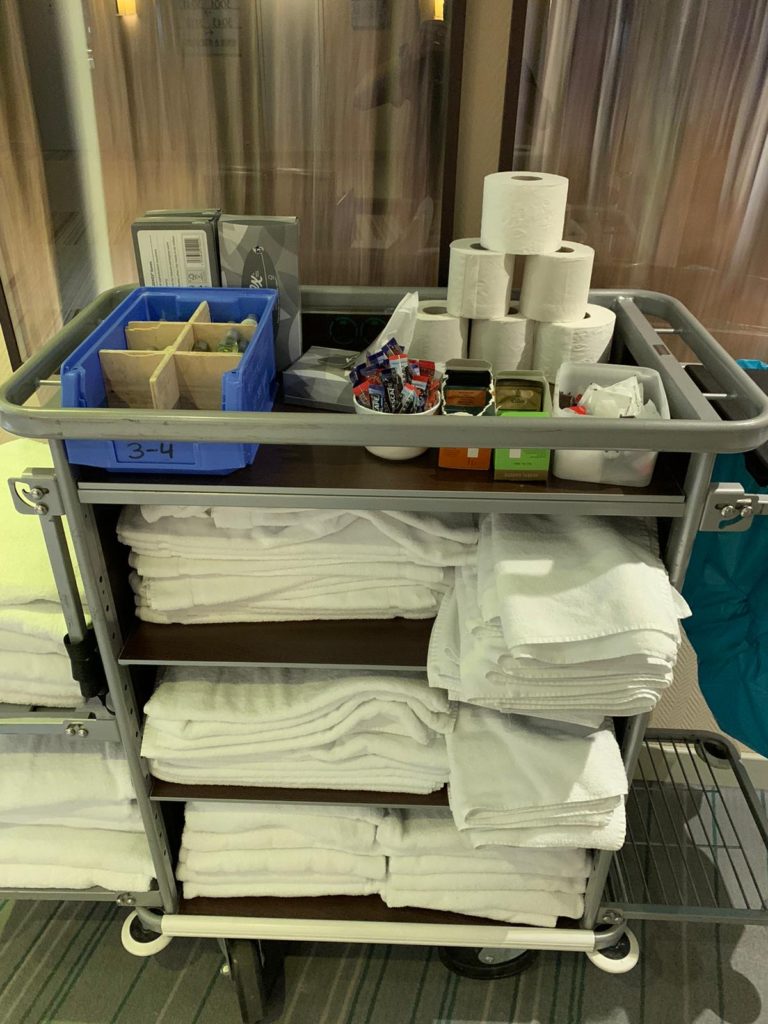 Ob Euer Zimmer während des Aufenthalts gereinigt wird, ist jedoch Glückssache. Auch wie oft das geschieht. Uns liegen mittlerweile Berichte von normaler täglicher Reinigung über Reinigung auf Anfrage bis hin zu gar keinem House-Keeping während des Aufenthalts vor. Ihr dürft Euch in letzterem Fall dann Toilettenpapier und Handtücher von einem Wagen nehmen, so wie es Frankfurtflyer-Leser Kim im Hilton Dresden erlebt hat. Oder aber ihr werdet im Bademantel zur Rezeption beordert, um Toilettenpapier und Duschbad aufzustocken.