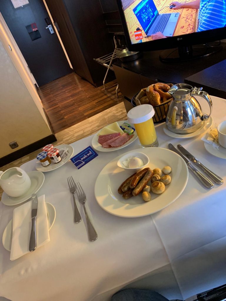 Mit etwas Glück oder Kenntnis der Lage, bucht Ihr Euch in ein Hotel mit geöffneter Club Lounge ein. Dann kann es sein, dass ihr statt eines Büffets eine kleine Karte mit Speisen vorfindet. Das sieht dann nach allem anderen als einer Sparmaßnahme aus. So vorbildlich setzt das zum Beispiel das Sheraton Carlton in Nürnberg um.