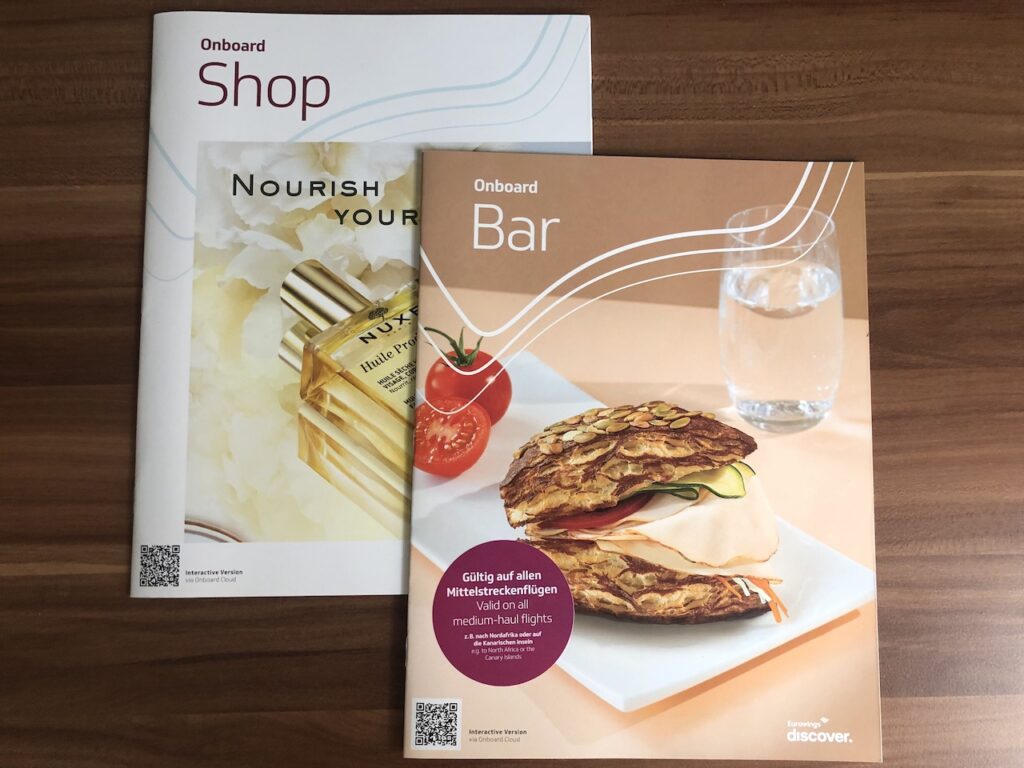 Zusätzlich dazu sind die üblichen Bordverkaufsartikel erhältlich, im Sortiment sind auch Kopfhörer und Decken. Sonnenbrillen können übrigens mit Hilfe einer App virtuell anprobiert werden, dazu halten Flugbegleiter eigene Smartphones bereit.