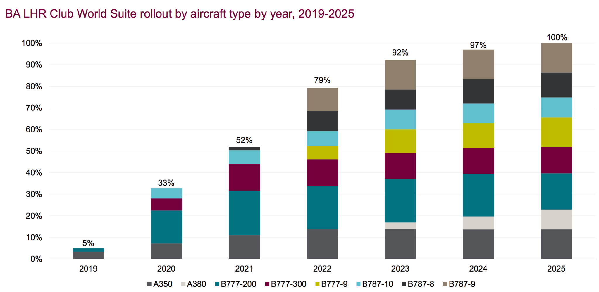 Der Zeitplan von British Airways sieht für den Umbau der Bestandsflotte wie folgt aus: