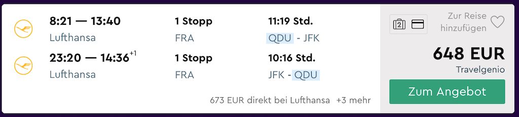 Die Preise starten schon ab rund 650€ nach New York!Besonders interessant sind die Angebote, da die Lufthansa Premium Economy Class bei zahlreichen Vielfliegerprogrammen eine sehr attraktive Meilengutschrift ermöglicht.