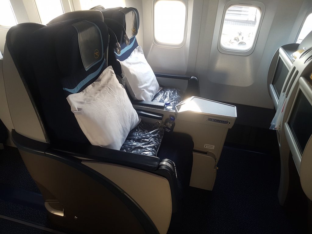 In der Business Class sind „fast“ alle Plätze gleich. Die Sitze sind immer in Paaren angeordnet. Aufpassen sollte man jedoch bei den Fensterplätzen in Reihe 5, hier fehlt nämlich ein Fenster.