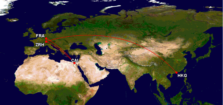 Swiss, wie auch viele andere Airlines auch, verkauft aus Kairo recht günstige First- und Business Class Tickets nach Asien. Das Beste an diesen Tickets ist die Möglichkeit eines kostenlosen Stopovers in Zürich. So konnte meine Schwester in ihrem knappen Zeitplan noch am Wochenende vor Ihrem Flug Langstreckenflug „schnell“ nach Kairo fliegen um Ihr Ticket zu starten. Vor der eigentlichen Reise ist sie dann einfach von München nach Zürich auf einem separaten Ticket geflogen und dann weiter mit der Swiss First Class nach Hong Kong.