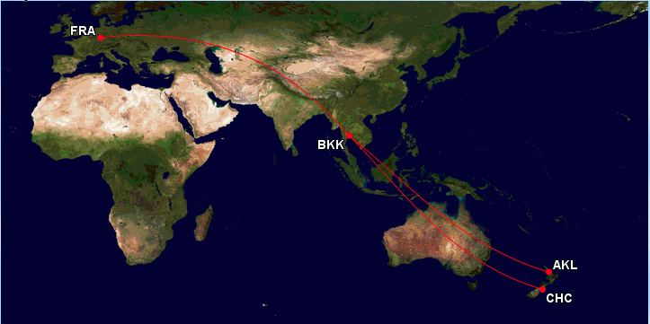 - LH 355 Christchurch- Bangkok- Frankfurt mit Boeing 747-400