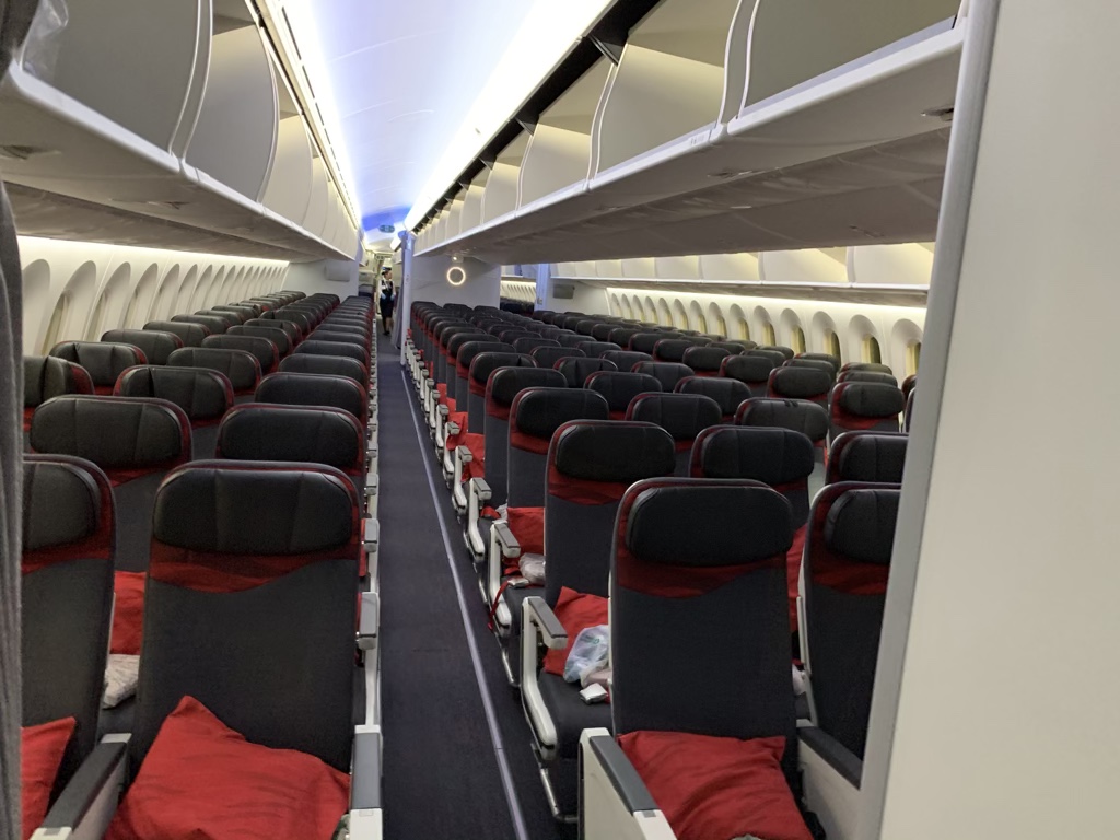In der Economy Class wird man wohl die übliche Economy Class in einer 3-3-3 Bestuhlung erwarten dürfen. Durch die etwas großzügigere Kabine im Airbus A350-900 wird man aber auch in der Economy Class ein wenig mehr Platz haben als in der Boeing 787.