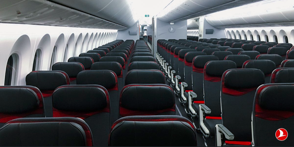 Insgesamt bietet die Turkish Airlines Boeing 787-9 Platz für genau 300 Passagier. Hierbei können 30 Passagiere in der neuen Turkish Airlines Business Class fliegen. Diese bietet in einer versetzten 1-2-1 Bestuhlung viel Privatsphäre und direkten Gangzugang für jeden Passagier.