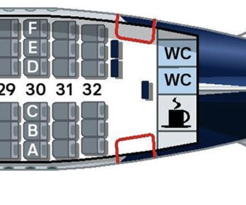 Wenn man nun denkt, dass mit den Gangplätzen alles gut wäre – weit gefehlt. Natürlich besteht hier die Möglichkeit seine Beine in den Gang zu strecken und sich in selbige Richtung etwas Luft zu verschaffen, doch auch hier kommt es bald zur Ernüchterung. Da sich das Flugzeug an dieser Stelle schon verjüngt, rücken auch die Reihen 31 und 32 im Gang näher zusammen.