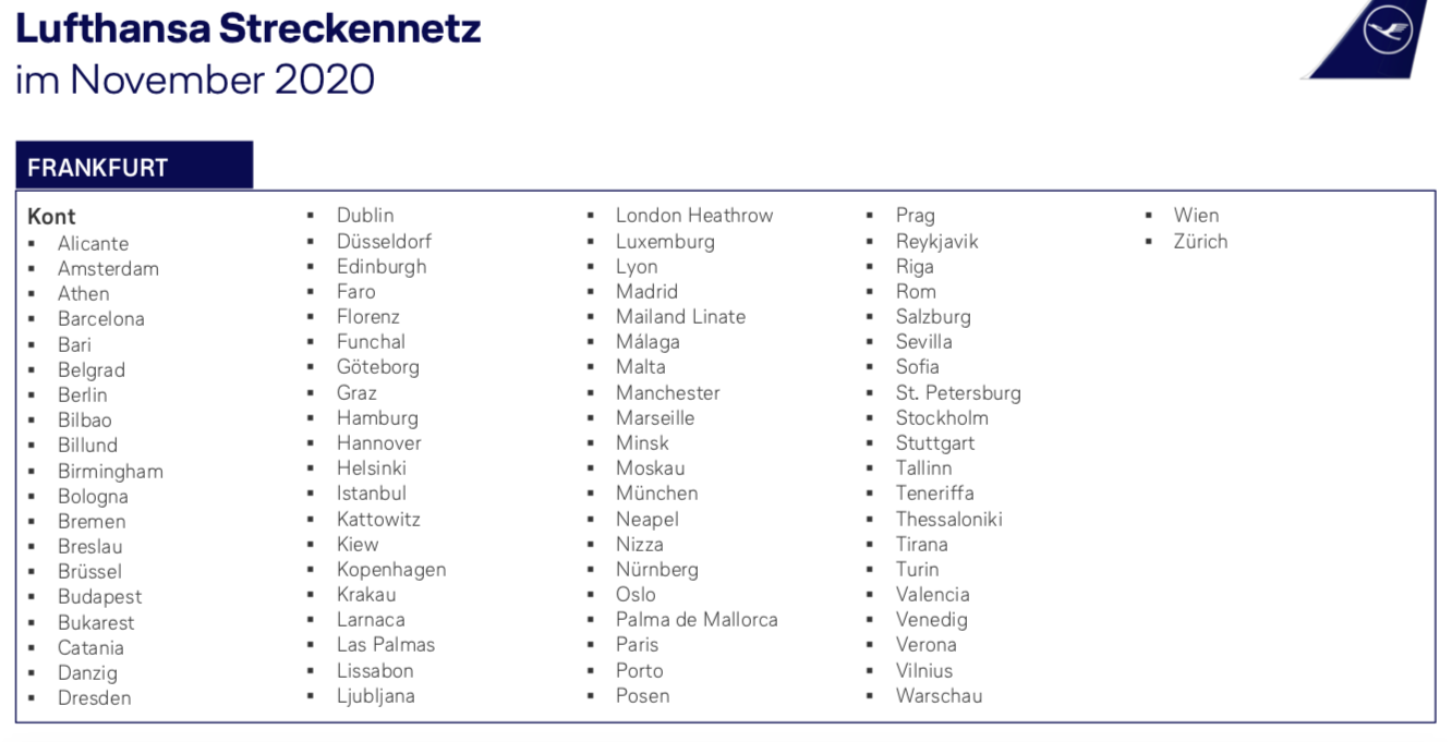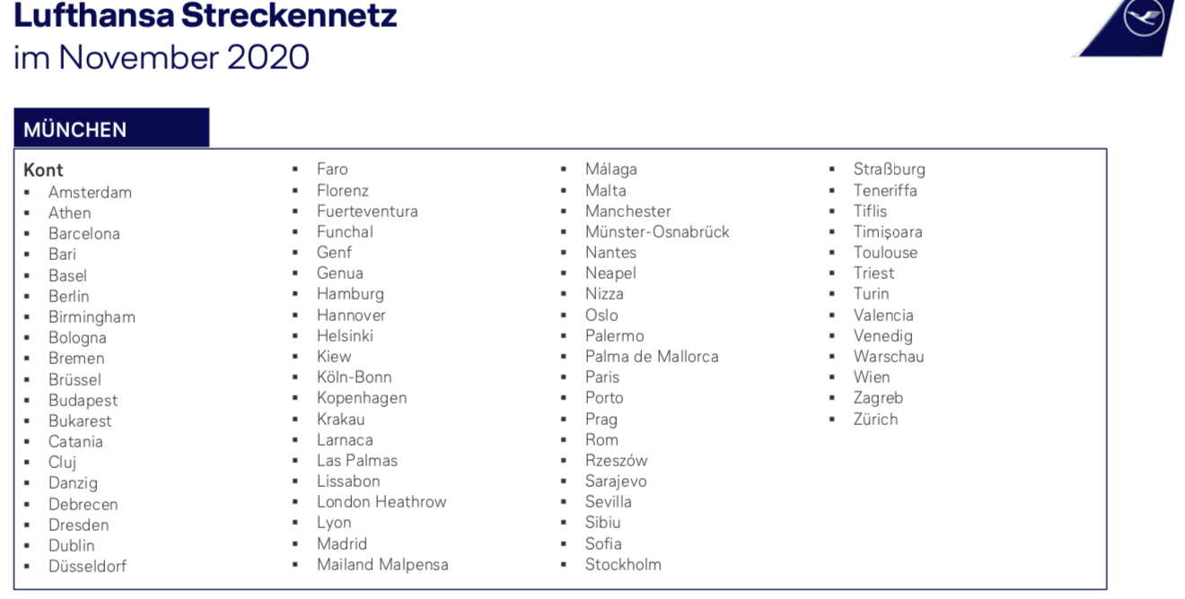 Eigentlich wollte man diesen Winter immerhin 50% des letztjährigen Flugangebotes fahren, jedoch hat sich dies als viel zu optimistisch herausgestellt und Lufthansa muss auf etwa 30% des Angebotes aus 2019 reduzieren, was für die Airline ein harter Schlag ist.