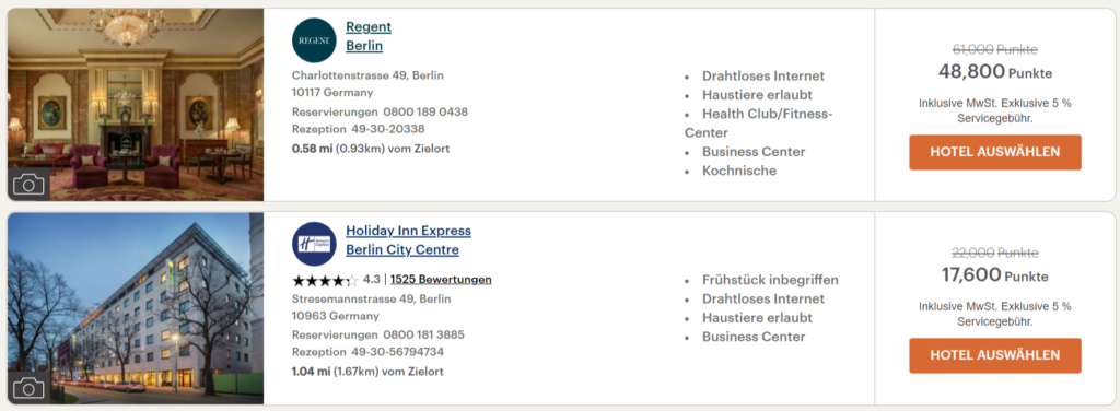 - Ist der „Rewards Nights“-Tarif verfügbar, wird Euch direkt neben dem Streichpreis der um 20% reduzierte Punktewert ausgewiesen