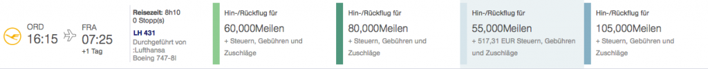 Chicago in der Lufthansa Business Class für 55.000 Meilen