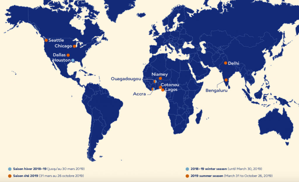 Festen Strecken ist der erste mit dieser neuen Kabine ausgestattete Airbus A330 bei Air France nicht zugeteilt. Bis in den Sommer will man aber alle 15 Maschinen umgebaut haben. Neben einigen Zielen in Afrika und Indien fliegt Air France den Airbus A330 auch zu Zielen in die USA.