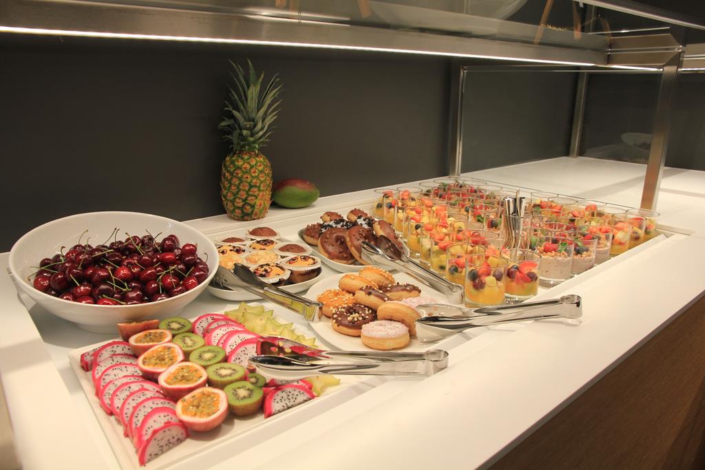 Swiss hat bei ihrem neuen Lounge Center A einen tollen Job gemacht. Die Lounges sind sehr großzügig und modern gestaltet. Es gibt viele Zonen in denen es sich der Gast gemütlich machen kann. Auch die Live-Cooking Stations und das Buffet bieten eine gute Auswahl.