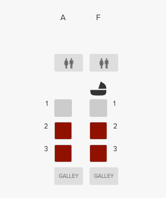 Als ich nachgeschaut habe, welche Singapore Airlines First Class Suiten sich zu einer Doppelbetten Suite verbinden lassen, habe ich den ersten Dämpfer erhalten. Jeweils die Sitze in Reihe 1 und 2 lassen sich zu einer Doppel-Suite kombinieren. Reihe 3 ist immer eine einzelne Suite. Die verfügbaren Sitze auf unseren Flug sehen leider so aus.