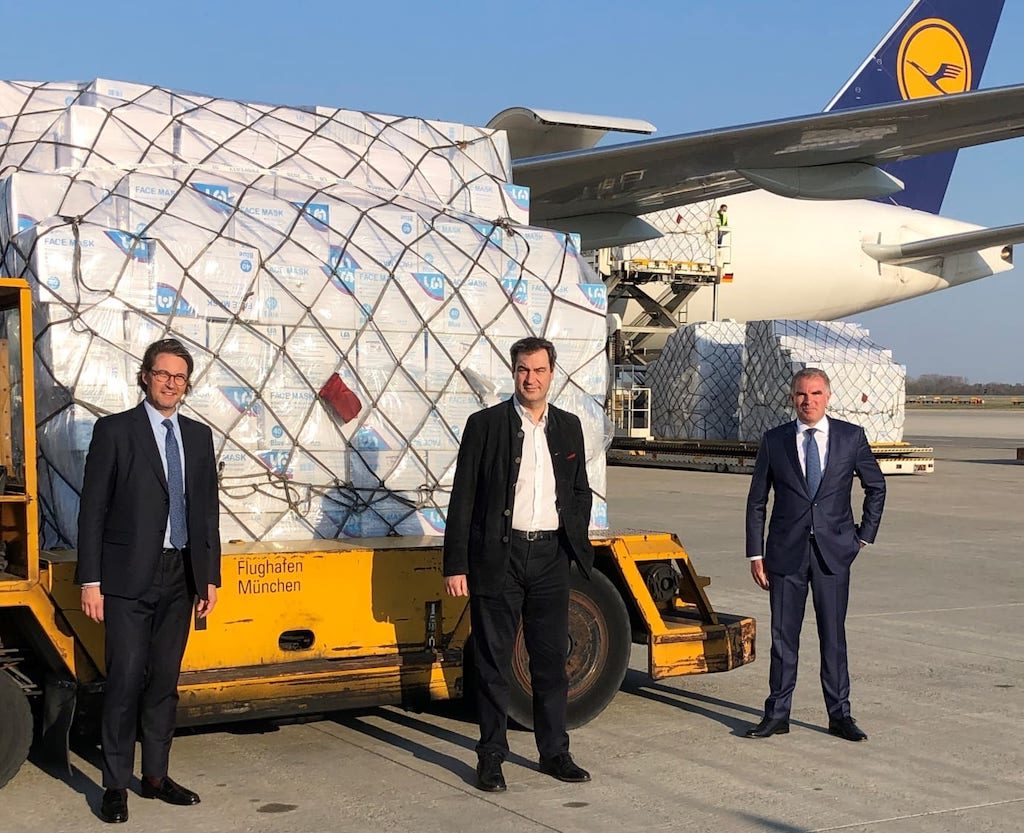 Der Lufthansa CEO hat kürzlich gemeinsam mit Politikern eine B777F in München in Empfang genommen: Darin dringend benötigte Schutzkleidung und tausende Masken aus China.