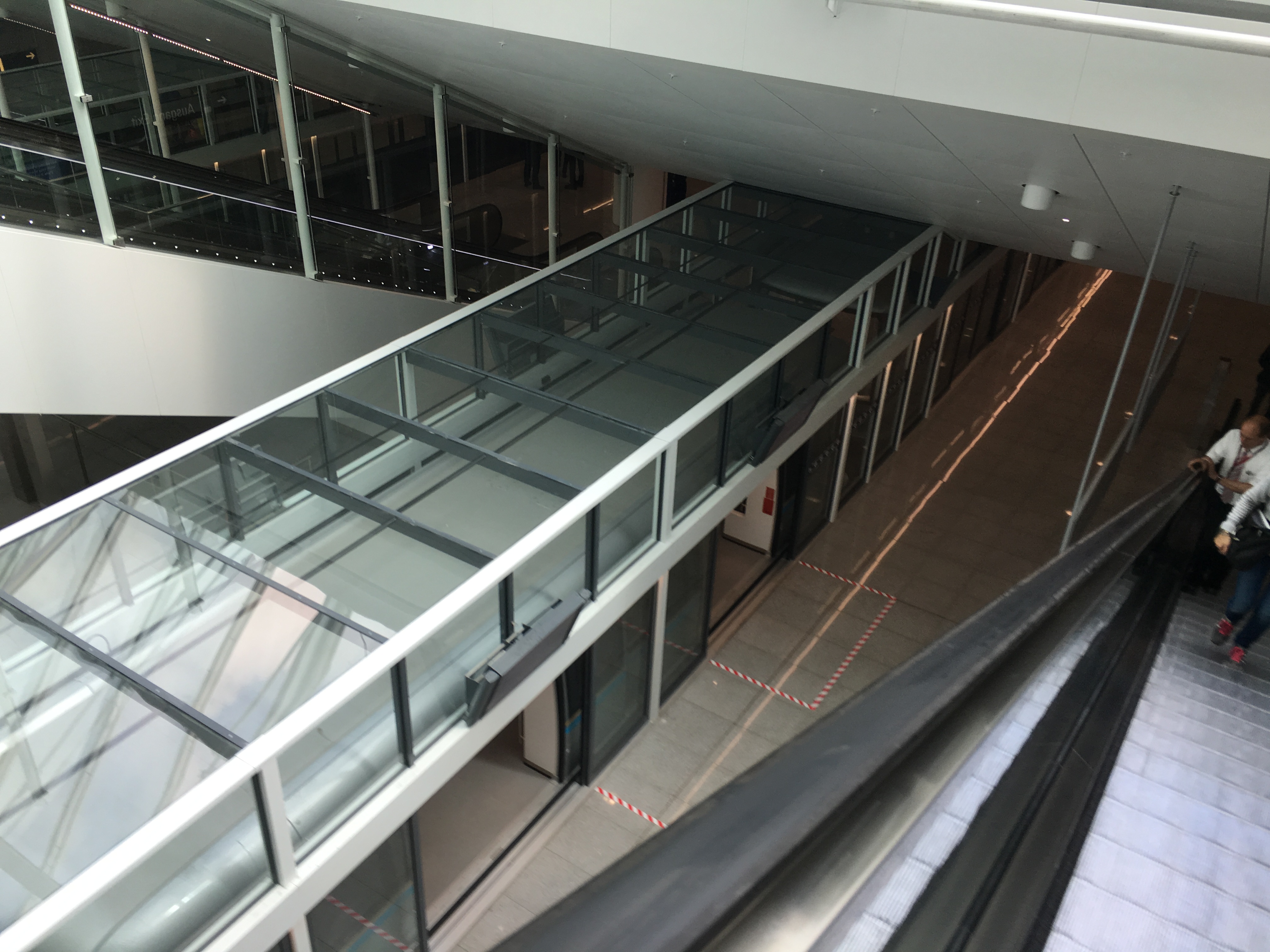 Das Satellitenterminal München ist, wie auch das Terminal 2, in zwei Ebenen aufgeteilt. Die Ebene K auf der die Schengen Flüge sowie der Ebene L auf der Non-Schengen Flüge abgefertigt werden. Einen Check-In Bereich oder eine Gepäckausgabe gibt es in dem Satellitenterminal München übrigens nicht. Diese befinden sich auch für die K- und L Gates weiterhin in der zentralen Abflugs- beziehungsweise Ankunftshalle des Terminal 2.