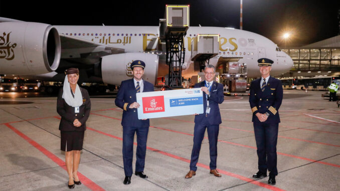 Die Freude über die Rückkehr des Airbus A380 ist groß. Wir haben den Anblick des Superjumbos auf unserem Vorfeld in den vergangenen Monaten sehr vermisst.Die Menschen wollen wieder mehr fliegen und mit der Welt verbunden sein. Mit der Wiederaufnahme des größten Passagierflugzeugs der Welt unterstreicht Emirates diesen Aufwärtstrend und ebenso die Bedeutung unseres Airports in ihrem Streckennetz. Mit der Airline verbindet uns eine über 20-jährige, enge und sehr erfolgreiche Partnerschaft.