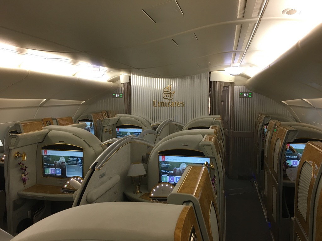 Besonders die 14 Kabinen in der vorderen Kabine des Oberdecks wirken durchaus etwas gedrungen und auch wenn die Emirates First Class sehr gut ist, ist es wohl auch die First Class im Airbus A380, welche am wenigsten Platz pro Passagier bietet. Zum Vergleich, Singapore Airlines verbaut auf der gleichen Fläche sechs neue First Class Suiten, während Emirates hier weiterhin 14 Sitze unterbringt.