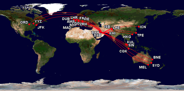 So musste man den Flugbetrieb sogar für zwei Wochen komplett einstellen, da die vereinigten Arabischen Emirate Passagierflüge zeitweilig komplett untersagt hatten. Seit April gibt es wieder vereinzelte Emirates Flüge, allerdings nur für Passagiere die Dubai verlassen wollen, weil sie dort festsaßen oder für Einwohner der VAE, welche nach Hause zurück kehren wollten. Ein Transit in Dubai war bisher untersagt.