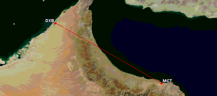 Nun setzt man aber noch einmal einen drauf und wird auf der Strecke zwischen Dubai und Muscat im Oman eine Airbus A380 einsetzten. Zwei mal am Tag fliegt ein Airbus A380 von Emirates nun den Hin- und Rückflug auf der etwa 350 Kilometer langen Strecke, welche mit 75 Minuten im Flugplan steht.