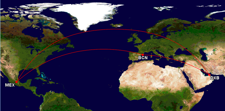 Emirates will schon seit Jahren Flüge nach Mexico City aufnehmen. Dies ist auch nicht wirklich überraschend, denn die Megametropole in Zentralamerika bietet einen riesigen Markt. Allerdings stellt diese Verbindung Emirates vor einige technische Schwierigkeiten, weshalb man sie bis jetzt noch nicht in den Flugplan aufgenommen hat. Nun gibt es Berichte, dass Emirates noch dieses Jahr Flüge von Dubai über Barcelona nach Mexico City aufnehmen wird.