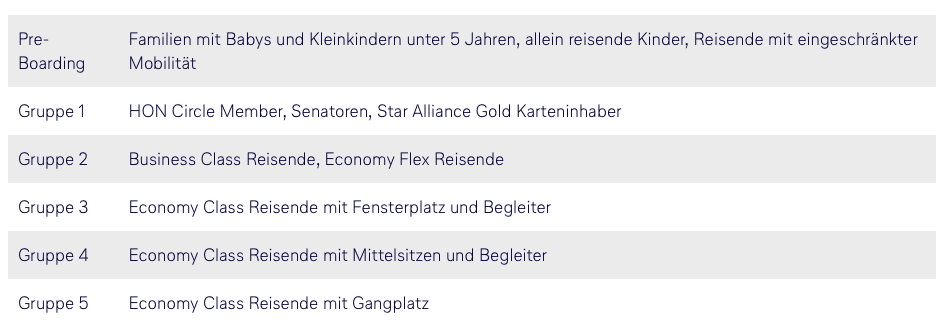 Neue Boardinggruppen bei Lufthansa | Die Gruppen