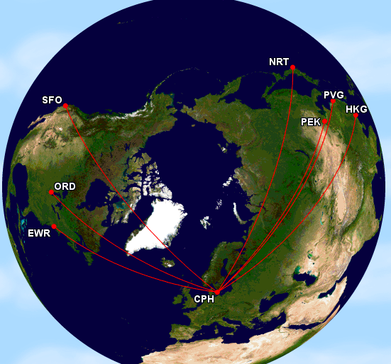 Mit den acht neuen Airbus A350-900 wird SAS Flüge von Copenhagen nach Chicago, Peking, New York, Tokyo, Shanghai, Hong Kong, und San Francisco aufnehmen, wobei man bis jetzt nur die Flüge nach Chicago in den Flugplan geladen hat.
