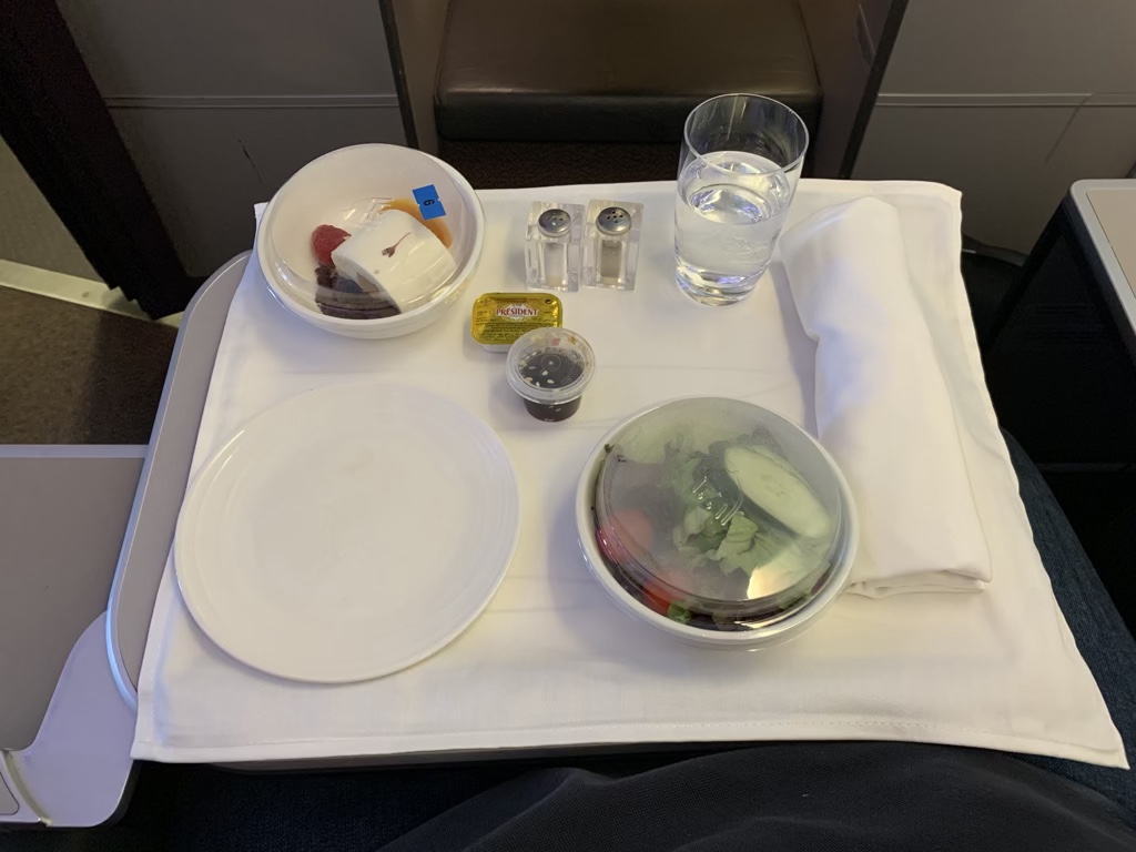 Auch das Essen auf beiden Flügen fand ich absolut in Ordnung, auch wenn es wohl nicht das große Highlight war. Allerdings fand ich meine Mahlzeit auf Kurzstrecken bei Singapore Airlines bis jetzt auch nicht wesentlich umfangreicher oder besser. Was den Service hier wieder unterstreicht ist, dass man nach einem Blick auf das doch recht kleine Stück Lamm beim Servieren des Hauptganges mit den Worten „that looks very small“ direkt noch einen zweiten Hauptgang angeboten hat.