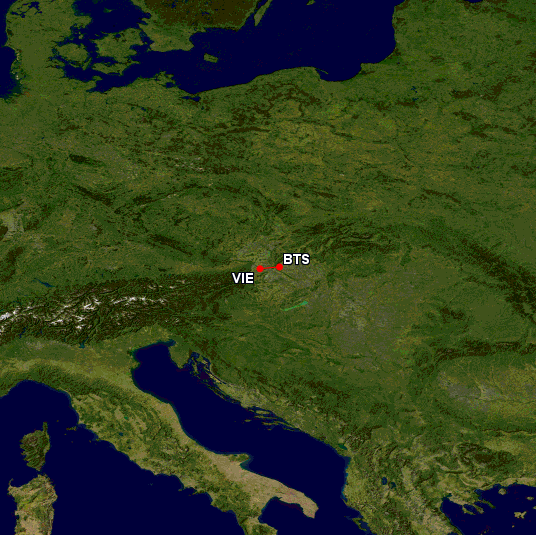 Die Flughäfen von Wien, der Hauptstadt Österreichs, und Bratislava, der Hauptstadt der Slowakei, liegen nur 30 Meilen bzw. 50 Kilometer entfernt. Das ist noch etwas weniger als die Strecke zwischen dem Flughafen Düsseldorf (DUS) und Köln/Bonn (CGN), welche etwa 34 Meilen voneinander entfernt liegen. Erschwerend kommt noch hinzu, dass der Flughafen Wien-Schwechat schon fast auf halber Strecke nach Bratislava liegt.