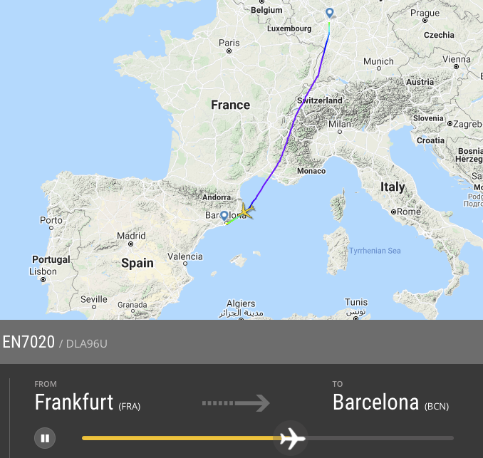 Nach 1:30 Stunden erfolgte die Landung in Rom überpünktlich, nur 50 Minuten später führte die D-AXGE dann den Rückflug durch. Gegen Mittag startete der zweite Flieger unter der Flugnummer EN7020 nach Barcelona. Eingesetzt wurde ein anderer Jet mit der Registrierung D-AXGF.