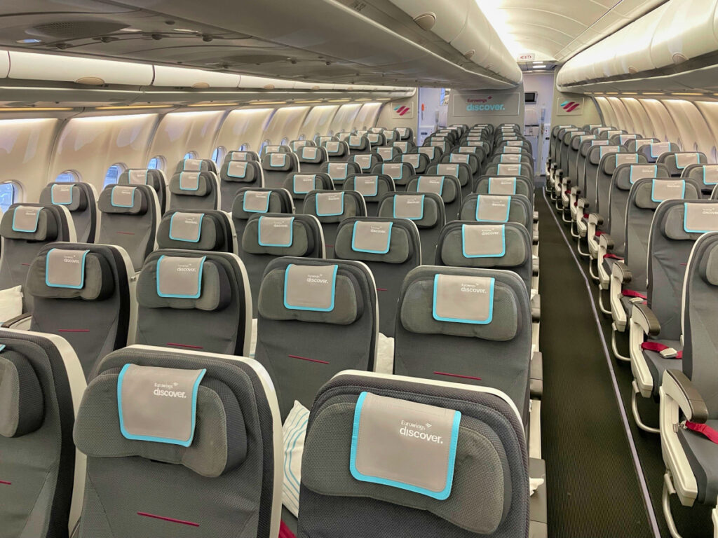 Eurowings Discover hat als neue Marke und Ferienflieger der Lufthansa das exakt identische Sitzprodukt von Lufthansa an Bord, sodass man sich auf eine moderne Kabine freuen kann und besonders in der Business Class auf ein komplett flaches Bett. Gerade letzteres ist bei Ferienfliegern alles andere als eine Selbstverständlichkeit.