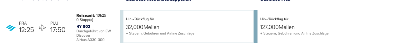 32.000 Meilen für Hin- und Rückflug, anstelle von 127.000 Meilen: