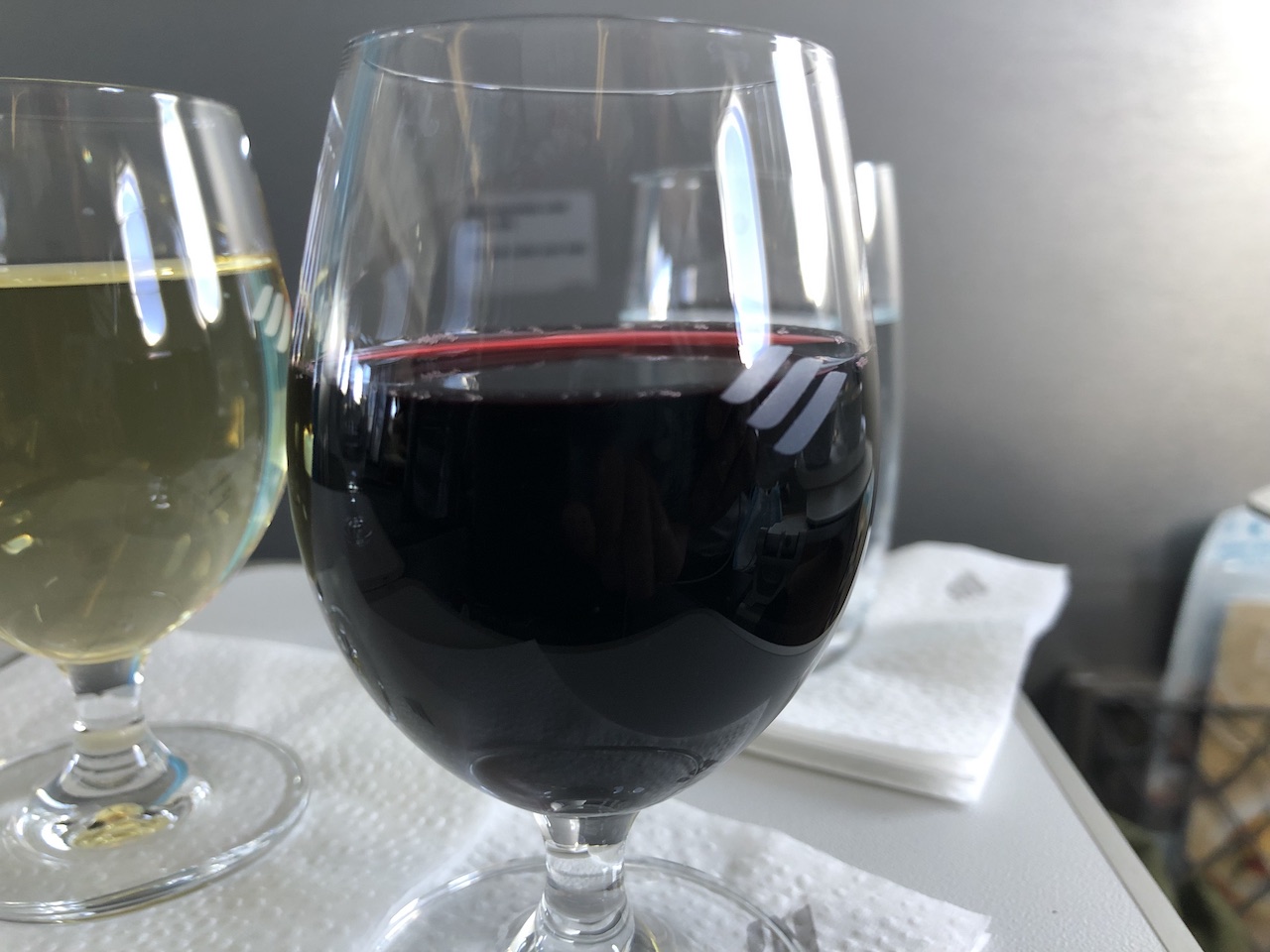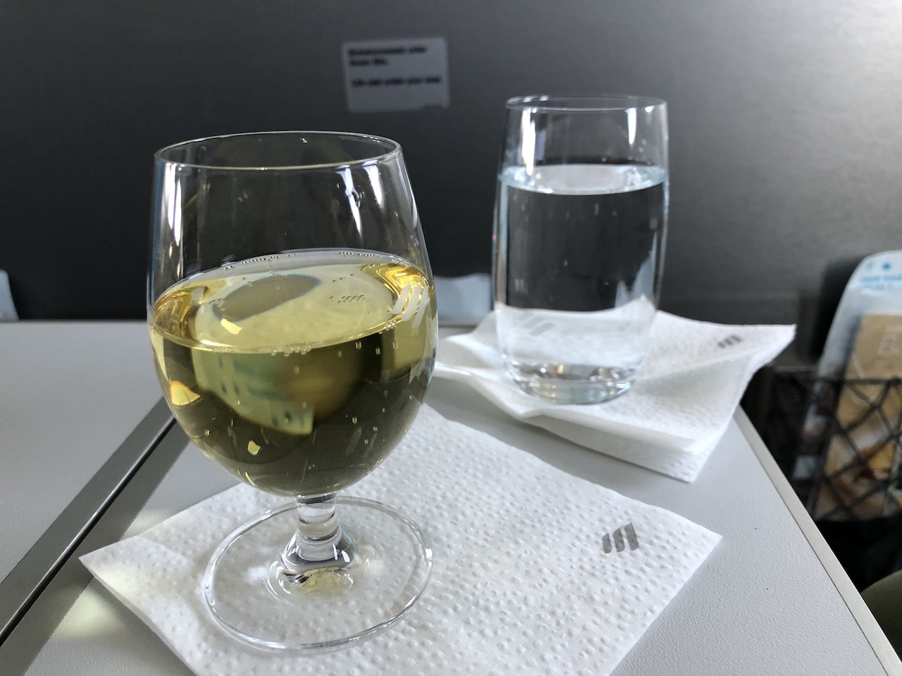 Dennoch könnte man hier Kritik an der Portionsgröße üben, auf dem Mittelstreckenflug wäre auch eine vollwertige warme Mahlzeit angebracht. Ein zweites Brötchen hätte es wahrscheinlich nur auf Nachfrage gegeben, dafür wurden die Gläser schnell wieder aufgefüllt.