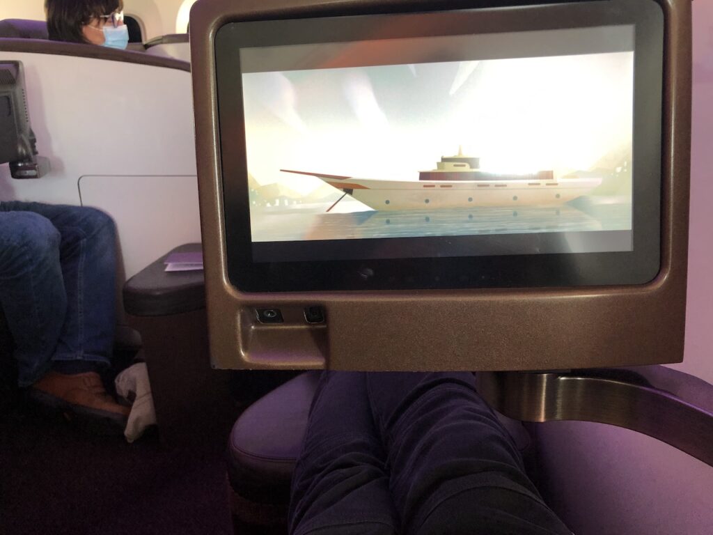 Danach habe ich einen Film angesehen, etwas gedöst und bin schließlich an die Bar. Dort kommt man gut ins Gespräch mit anderen Passagieren und der Crew, kann sich etwas die Beine vertreten und Getränke bestellen.