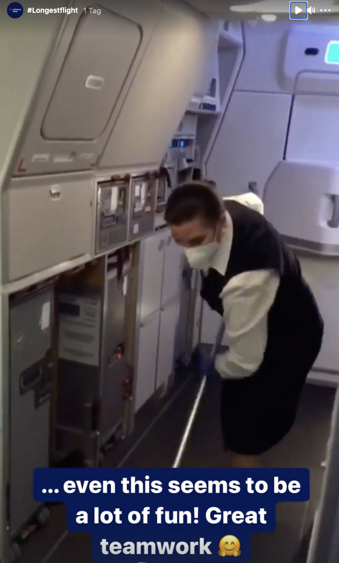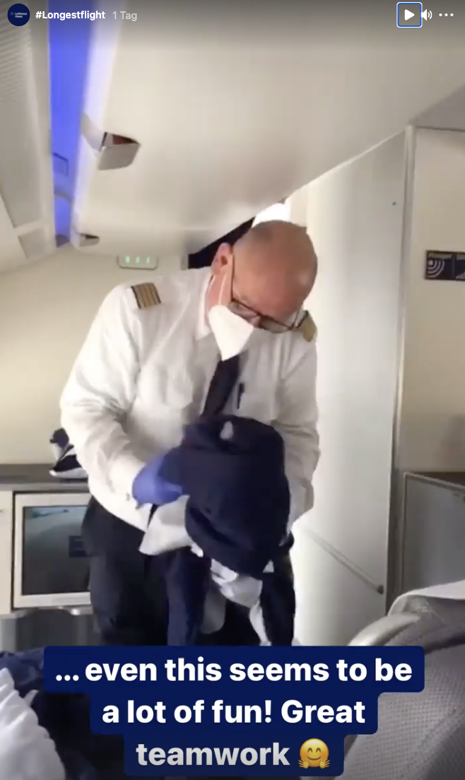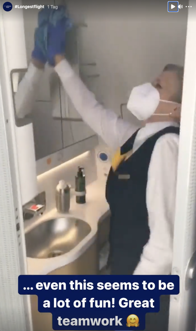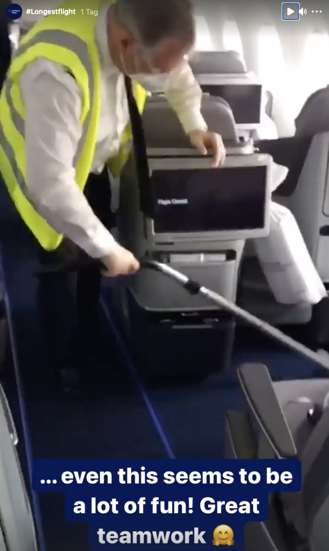 Bei den Portalen von Twitter (@lufthansaNews) und Instagram (@lufthansaviews) sind zahlreiche Bilder zu sehen. Darunter sind auch Interviews der Forscher während des Fluges. Sogar die putzende Crew ist dokumentiert, die direkt nach der Landung des Rekordfluges die Maschine fit für die Rückreise gemacht hat. Die Umstände mussten bereits bei den Planungen in Deutschland berücksichtigt werden. Daher war bei der Beladung neben dem Cleaning-Equipment auch alles notwendige wie Catering für den Rückflug an Bord.