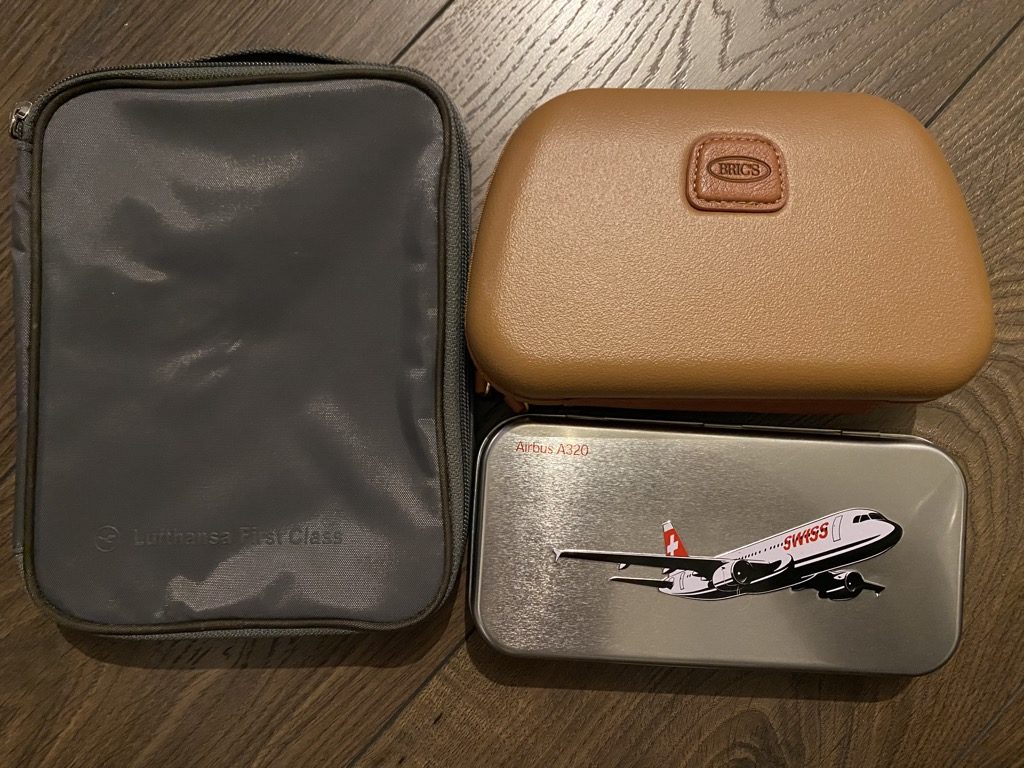 LH First windsor (11) 35€; Swiss First Kosmetik (12) 25€; Swiss First HER (13) 35€- British Airways First (14) 35€; Swiss First HIS (15) 35€; LH First grau (16) 30€