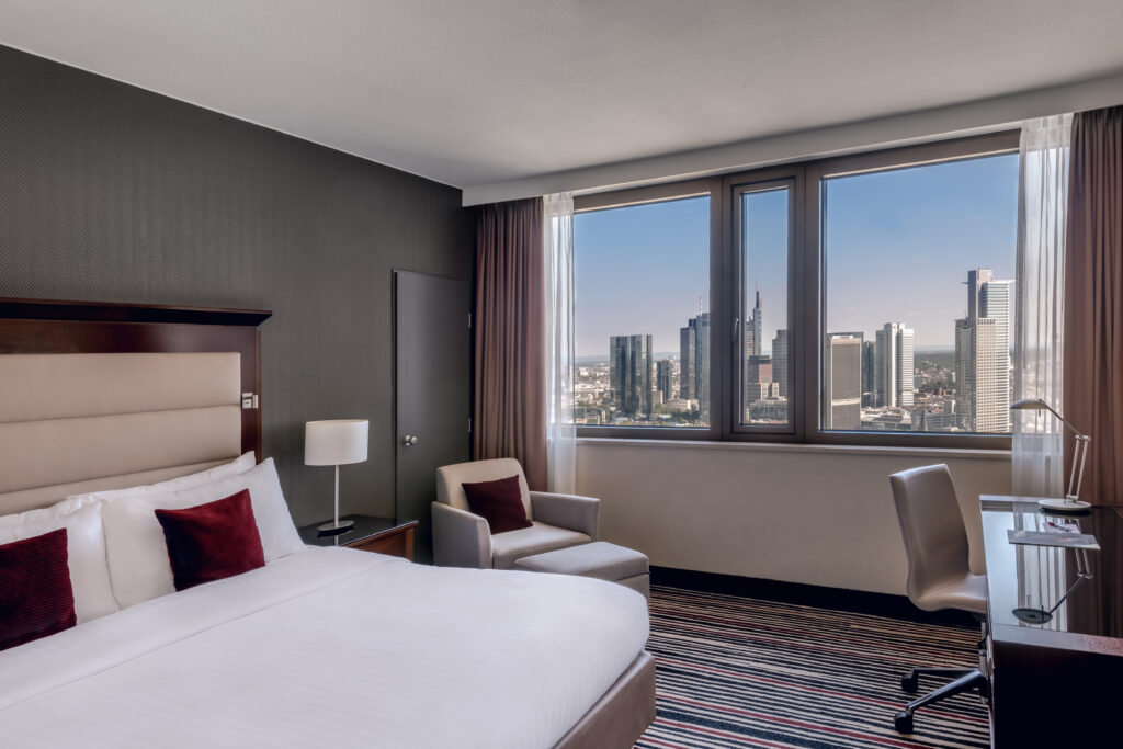 Das Frankfurt Marriott Hotel zählt zu den gehobenen Business Hotels in Frankfurt. Direkt gegenüber dem Messe- und Kongresszentrum gelegen, verfügt es über 25 moderne Konferenzräume, den größten Tageslicht-Ballsaal der Stadt mit 774 m² und eine hauseigene Veranstaltungstechnik. Die 593 Zimmer befinden sich auf den Etagen 26–44 und bieten ein modernes Design.