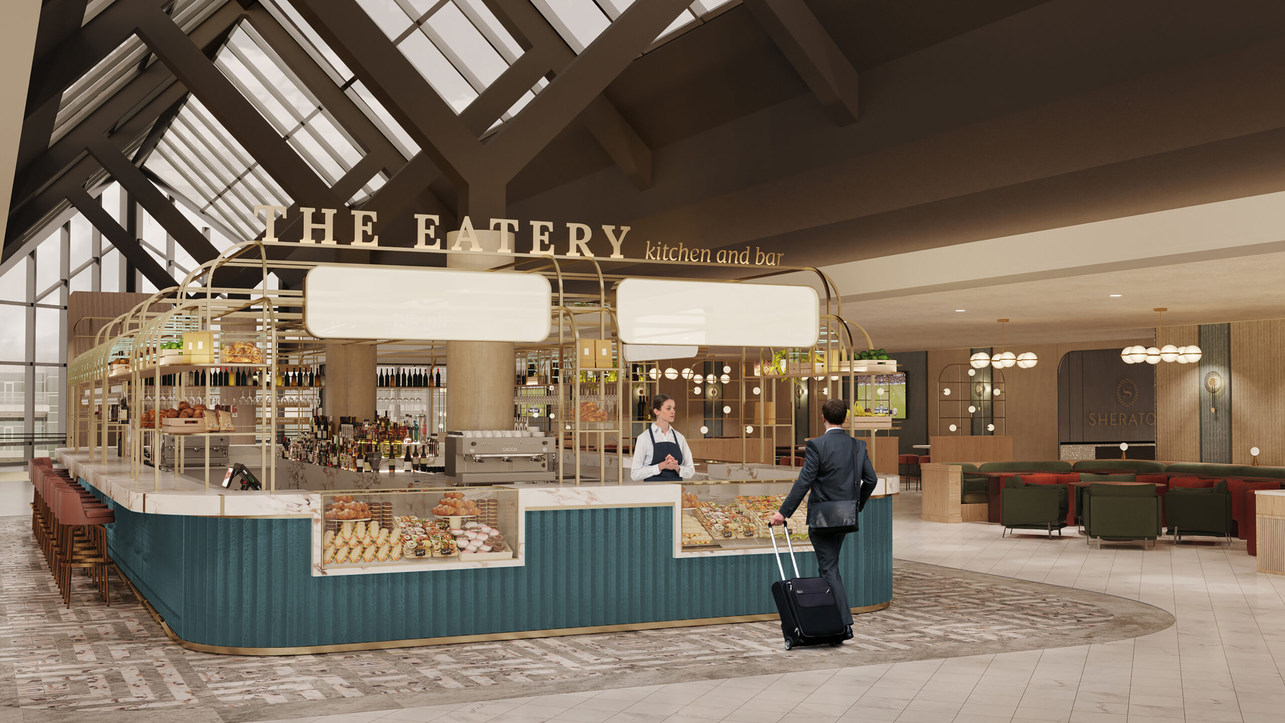Grundsätzlich bietet das Hotel ein Komplettpaket inklusive Restaurants, Meetingräume, Fitnessbereich und einem Spa (mit dem Sheraton Frankfurt gemeinsam genutzte Bereiche). Aufgrund der aktuellen pandemischen Lage ist nur das Lobby Restaurant „The Eatery kitchen and bar“ geöffnet, welches ein buntes Angebot aus leckeren Speisen und Getränken anbietet.