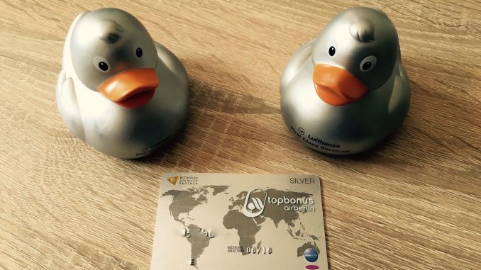 Ich selbst habe, wenn es um das Thema Vielfliegerstatus geht, sehr viel Glück und darf gleich eine Reihe von „top tier“ Status halten. Daher habe ich mich entschieden, bei meinem ersten Gewinnspiel ein wenig hiervon abzugeben und einen Air Berlin Topbonus Silber Status für ein Jahr unter meinen Lesern zu verschenken. Als kleine „Trostpreise“ verlosen wir auch noch zwei silberne Badeenten aus dem Lufthansa First Class Terminal in Frankfurt.