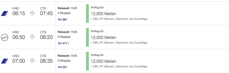 Durch die neue Möglichkeit der online Buchung einiger Partnerairlines, entstehen natürlich auch bei einer Onlinebuchung einige spannende Optionen. Der für mich spannendste Partner ist ANA, da die japanische Airline keine, bzw. nur verschwindend geringe Treibstoffzuschläge erhebt. Damit sind die Zuzahlungen auf Prämienflüge sehr niedrig.
