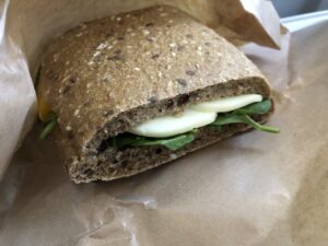Hierbei handelt es sich um ein Mozzarella Grillgemüse Sandwich. Optisch und geschmacklich nichts Besonderes, beim Brot könnte etwas Abwechslung nicht schaden. Alternativ wird das Chicken Hummus Sandwich offeriert.