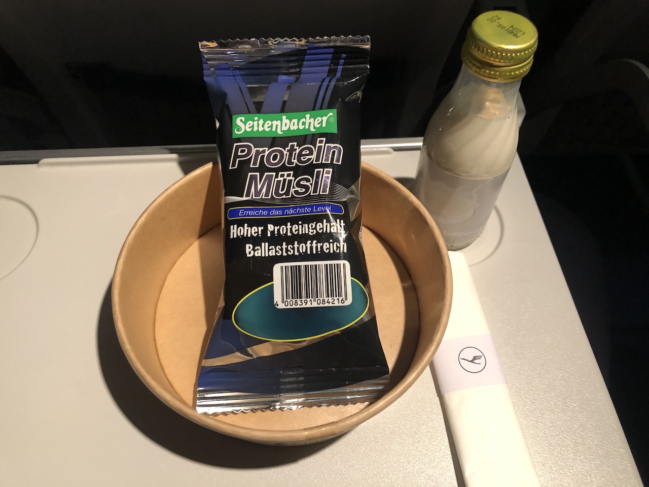 Das Frühstück zeichnet sich am Meisten damit aus, dass es eine längere Haltbarkeit aufweist. Lufthansa begründet dies damit, dass die Kühlkette über Nacht nicht gewährleistet werden kann. Somit bleibt auf frühen Abflügen aus dem Ausland nur die Wahl zwischen dem „Protein Müsli“ und einem länger haltbaren, verpackten Kuchen.