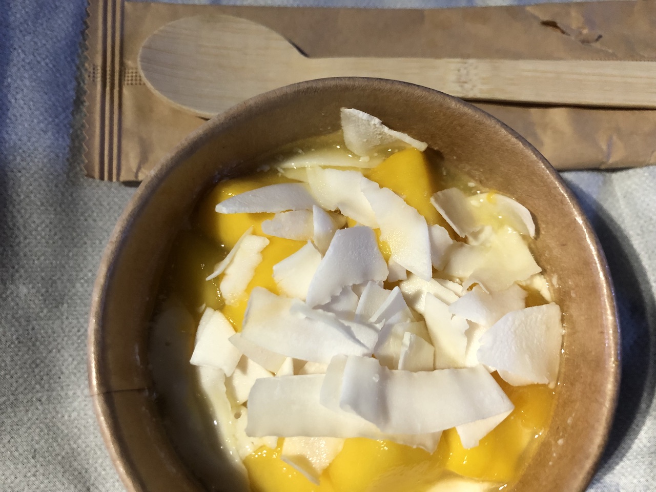 Neu ist auch der Koskosmilchreis mit Mango, dieser sah auch sehr gut aus und schmeckte hervorragend. Die Portion ist allerdings etwas klein, der Preis mit 4€ nicht gerade niedrig:
