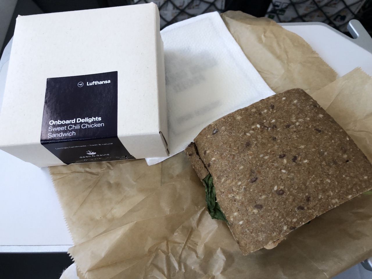 Sandwiches findet man in den Menükarten aller Airlines, kein Wunder dass diese geblieben sind. Die Variante mit Pastramibelag ist verschwunden, der Nachfolger heißt „Sweet Chili Chicken“.
