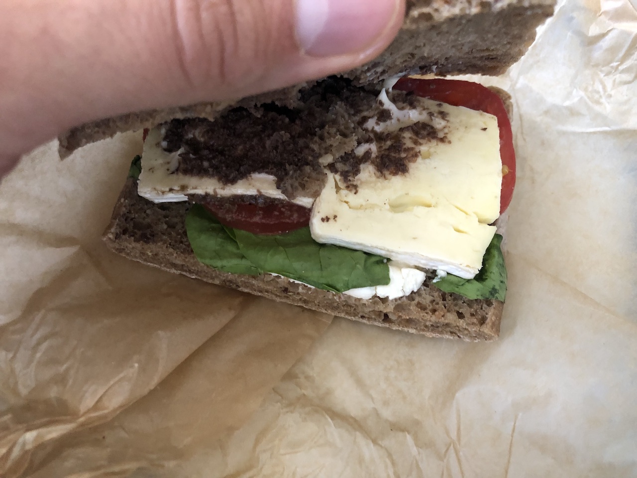 Frisch belegt und so appetitlich wie auf der Abbildung in der Karte sieht das Sandwich zwar nicht aus, schmeckte aber nicht schlecht und ist insbesondere im Paket mit einem 500ml-Getränk für 7€ bei dem Preis im Mittelfeld. Die vegetarische Version kommt jetzt mit Oliven und Brie: